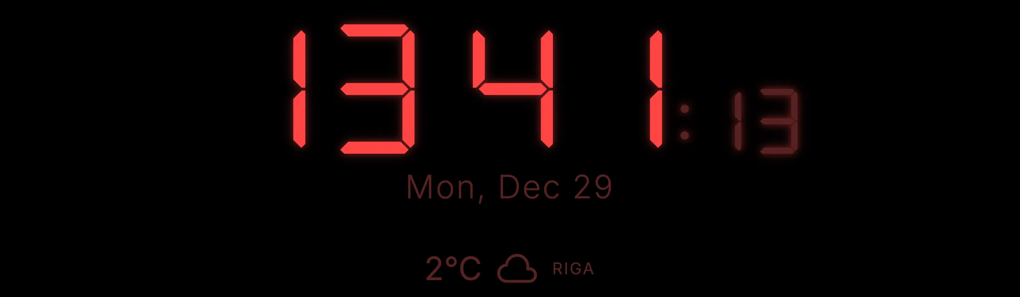 That felt right for the app. This clock is meant for people who are, in one way or another, on watch: working late, keeping an eye on the room, leaving the TV on as a quiet office companion, or just needing the time and weather to stay visible without demanding attention. It should be dim, unobtrusive, and reliable. It should do its job and not go dark.